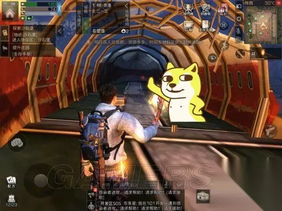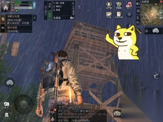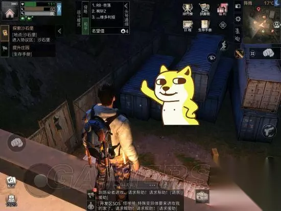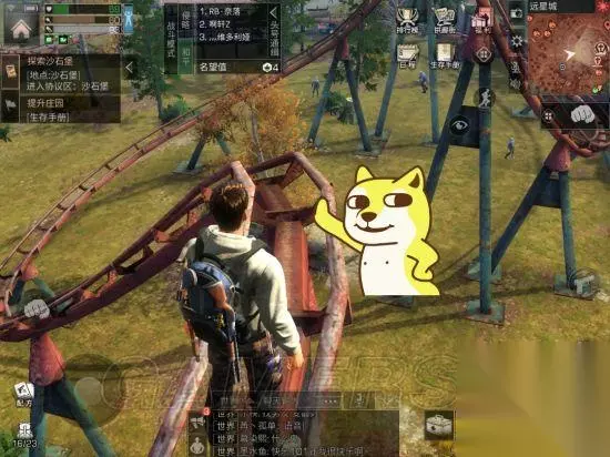 【狗手所指之处】为足球场的“流浪者宝藏”,这里面有很多免费箱子,但是,红名组队来抢物资的很多,为了截这张图,被那俩红名杀了三次