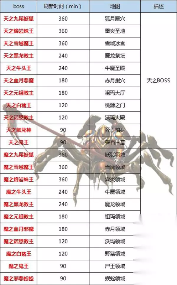 t15_2-t15_1:7.0 在王者大陆上有着许许多多的BOSS,它们分散在各个地区,它们的掉落是我们提升实力必要的途径。那么它们到底都在哪里呢,它们的刷新时间又是多久呢,就让小编来带大家了解一下吧! BOSS之家篇