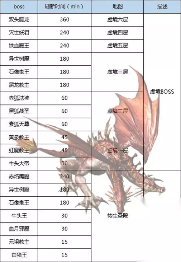 转生神殿和虚境Boss基本是相同的,在对应的转生等级下才能进入特定地图。所以,经常我们都会见到一些高端玩家嘴中的“卡转生”,其实也是为了占据Boss资源哦~ 本次的Boss攻略本服篇就到这儿结束了~希望能对各位勇士们提供帮助~,当然也希望各位多多关注《王者传奇》官网和论坛,后续还会有更多资讯与攻略更新哦~