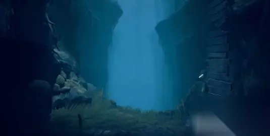 收集完影子后返回,沿着坠落的吊桥木板爬上悬崖。