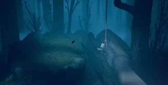 游戏攻略: 穿过空心枯树杆,来到上方。