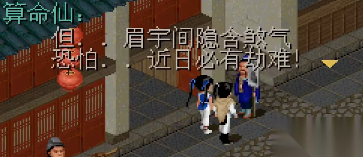 当游戏进入到苏州剧情,李逍遥和赵灵儿从客栈出来会遇到一个算命先生非要给我们算命。算命先生算出赵灵儿近日会有劫难,然后李逍遥很生气的拉着赵灵儿走了。 后来你还可以找到这位算命先生,当然也是在赵灵儿出事以后,这个时候你可以把算命的钱给他补上。