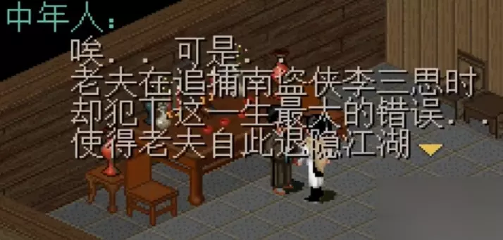 李逍遥的父亲是李三思,在仙剑1里面几乎没有怎么被提及,但是南盗侠的名声在这里摆着,所以关于他的传奇故事肯定不少。 在盛渔村右下角的房子里面,跟这个中年人对话,并且选择相信他的故事,他就会告诉你他当年追捕李三思的经历。