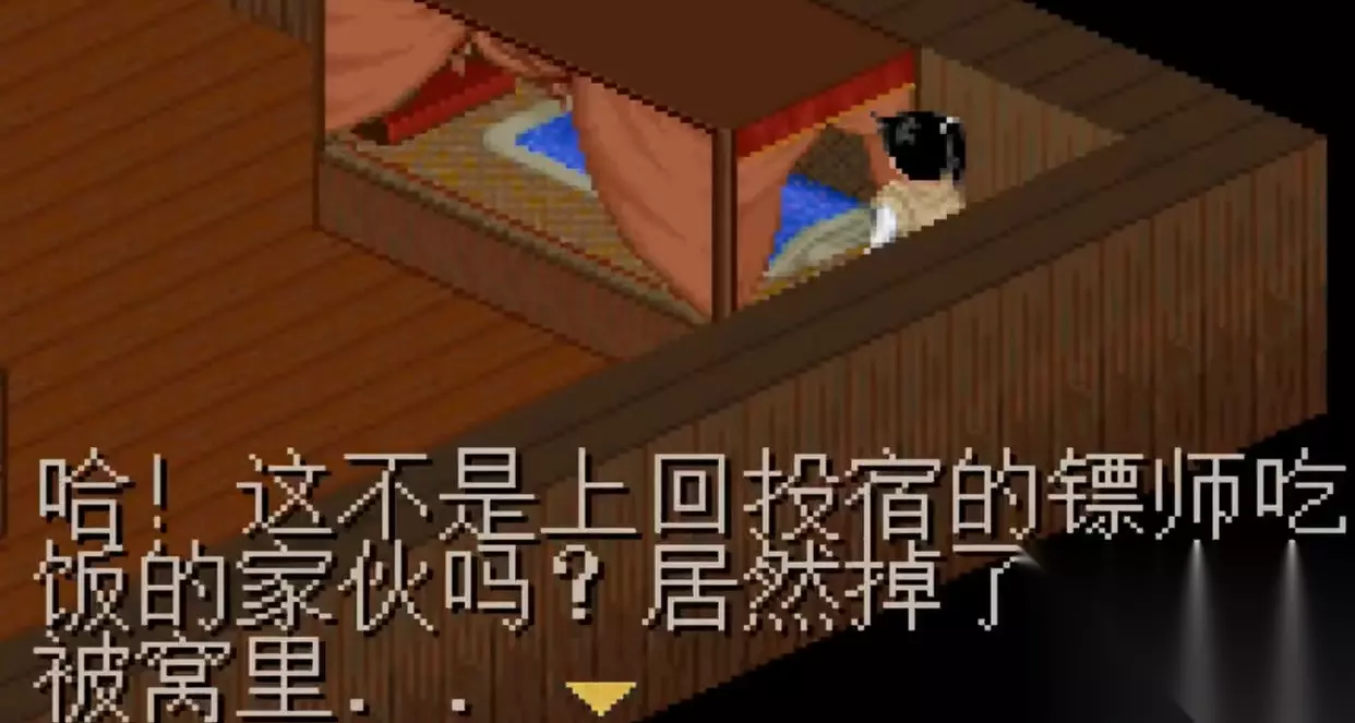 仙剑1代里面有很多物品的获得方式用今天游戏制作的眼光来看依然很有意思。用现在的话说这些道具藏得很深,比如这支梅花镖藏在床的这一边。