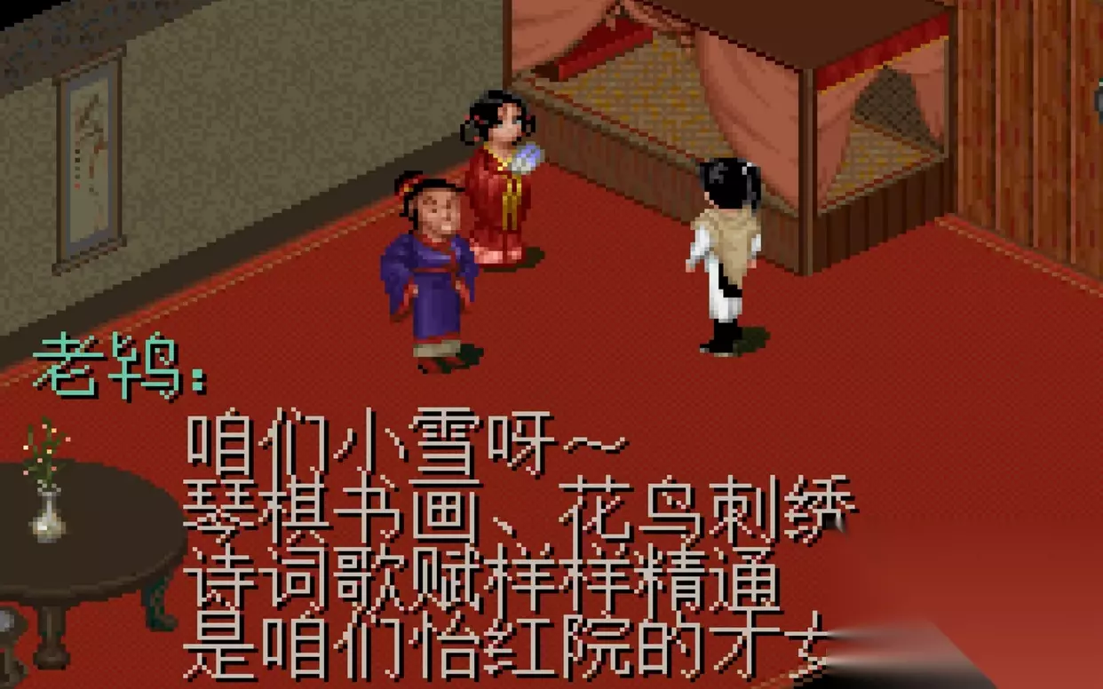 顺带一提,李逍遥还可以在妓院叫姑娘。。好像是2000文钱。不过这位小雪姑娘真的是琴棋书画样样精通。。李逍遥最后劝她别做这个。。