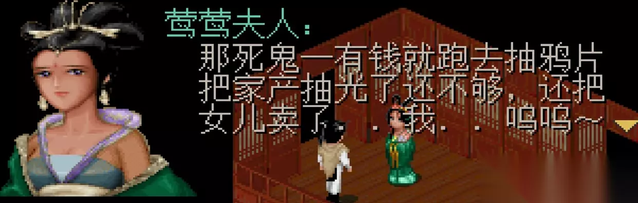 还是尚书府剧情这里,可以在城内找到一个乞丐,他会告诉你他的老婆嫌弃他穷,实际上在妓院找到他老婆以后,她会告诉你是这个男的吃鸦片,还要卖女儿,最后她不得已才沦落到这里。
