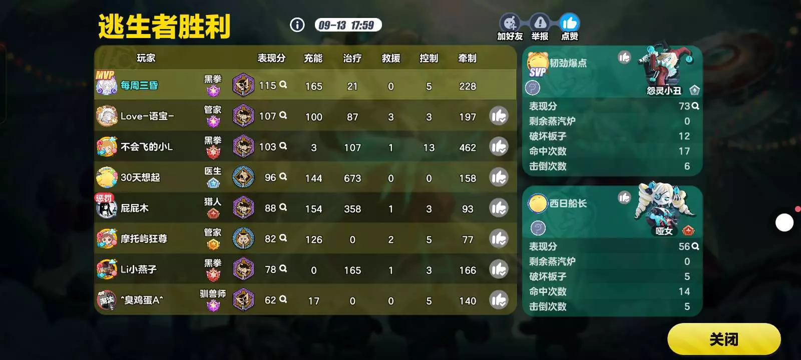 这局追捕平均表现分一百几十多
