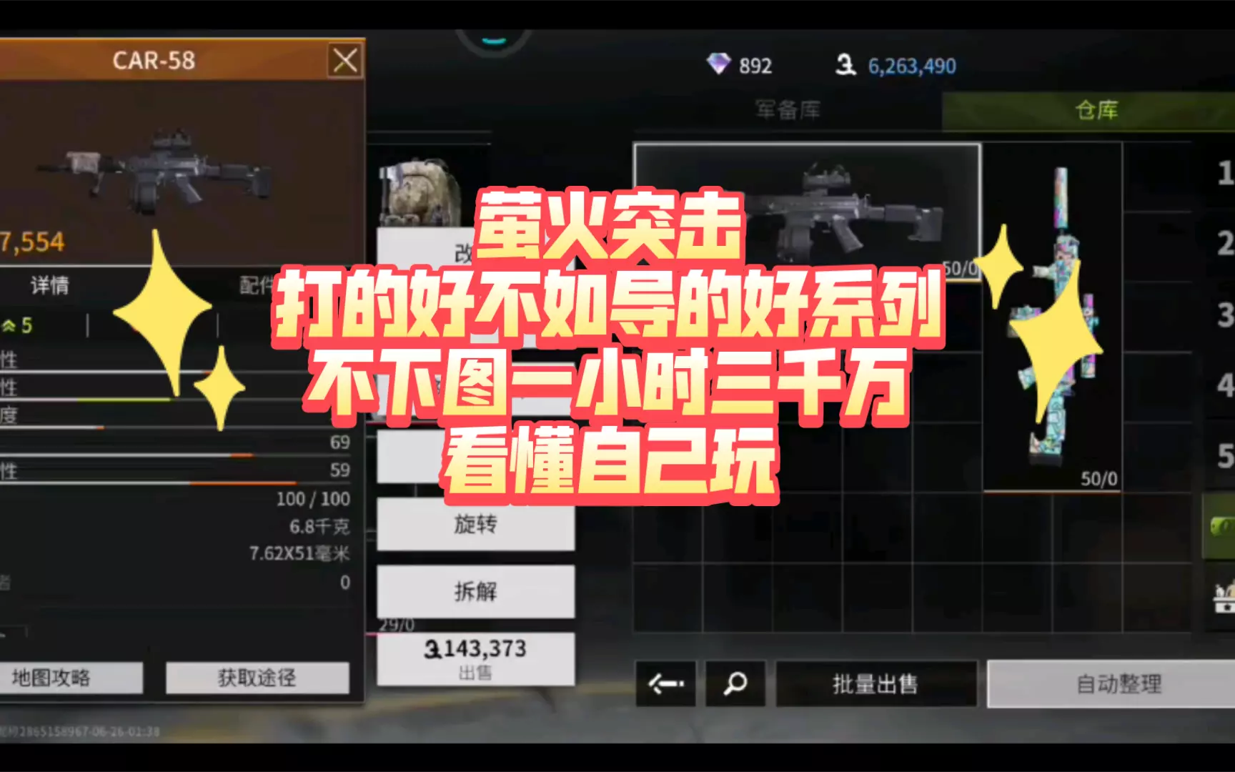 这是《萤火突击》SS8赛季的枪械改装攻略,推荐CAR-58突击步枪为版本强势枪械,展示了该枪械的弹鼓、护手、握把、消音器、枪托等配件选择及配件属性,改装后CAR-58性能强劲,可实现秒敌。