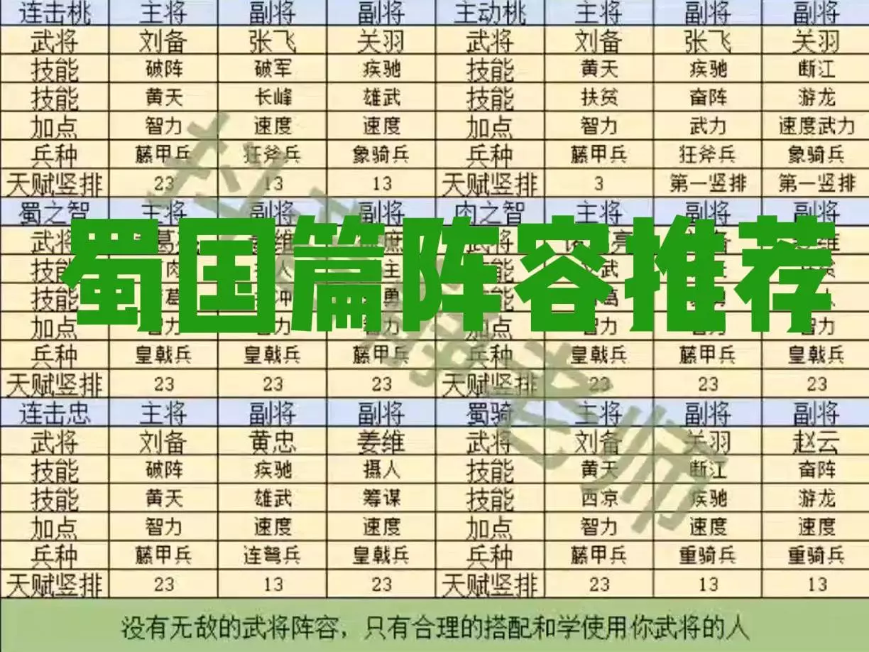 蜀国篇阵容推荐