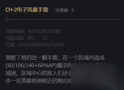 3、E技能是扔出一颗手雷,指定区域内的敌人造成伤害和减速,区域中心的敌人会被眩晕。