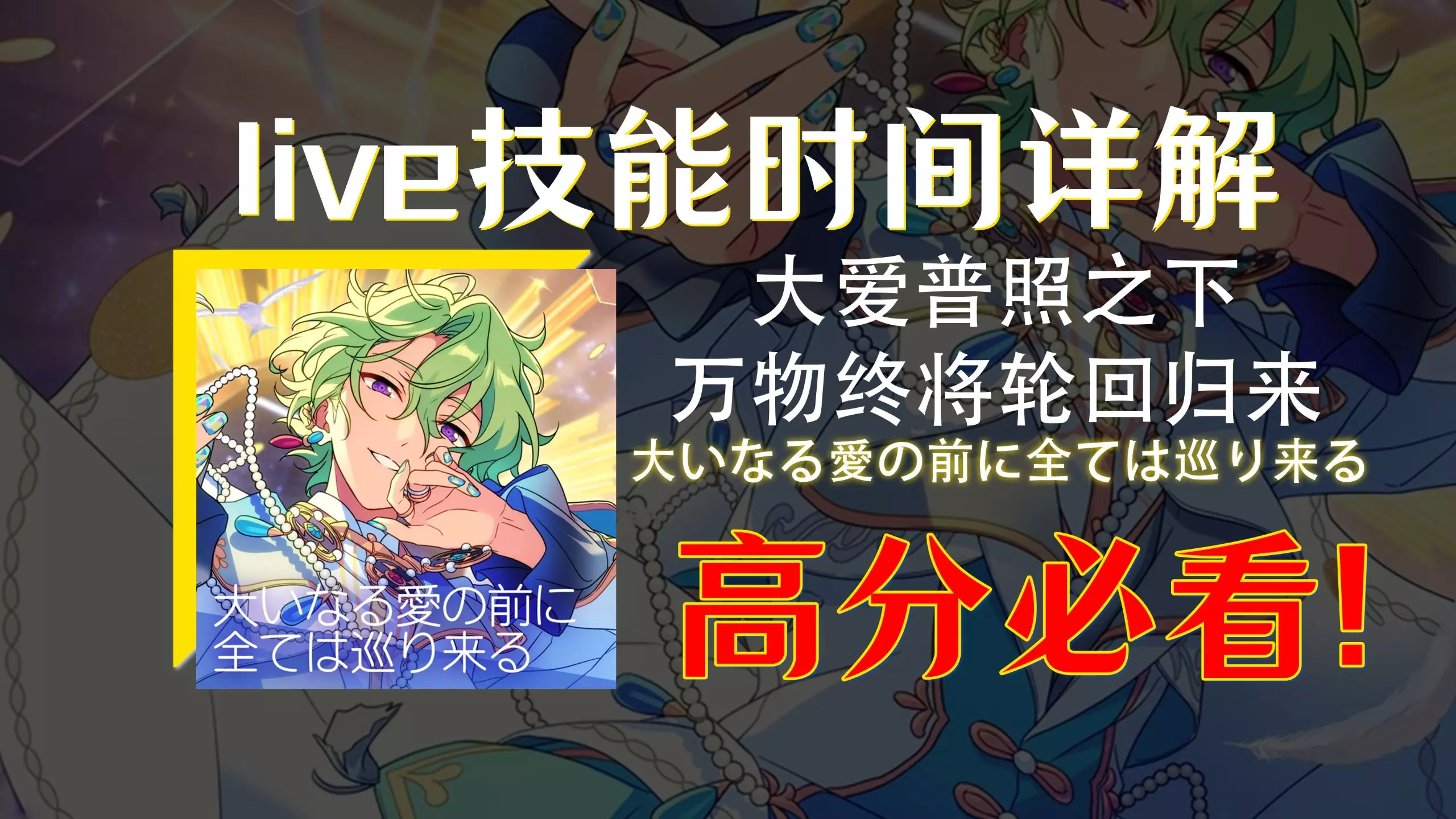 这是《偶像梦幻祭2》的游戏录屏,展示了玩家游玩歌曲《大爱普照之下万物终将轮回归来》的过程,打出了多个PERFECT判定,还取得了活动高分榜1的记录,呈现了音游的精彩操作画面。