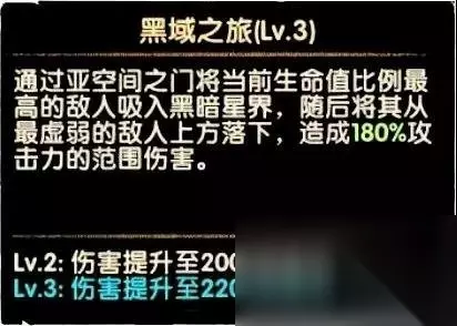 三技能黑域之旅,将生命比例最高敌人抓起扔到生命比例最低敌人头上,这个技能开场释放非常快,在第一次平a之前就会释放。试玩时每次都抓取站位最后的法师。