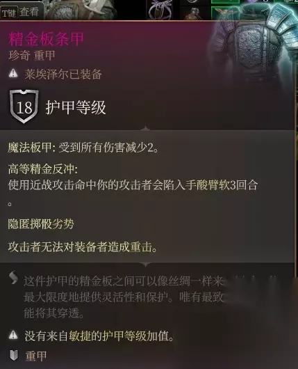 博德之门3精金武器哪个好呢,在博德之门3游戏中有着许多的精金武器,结合到许多方面来说,都会有很多属性方面的不同,接下来就让233乐园小编给大家带来博德之门3精金武器选择攻略。 博德之门3精金武器选择攻略 1、在精金武器中首先推荐的是选择防具护甲,因为普遍的武器属性值都不加低。 2、在护甲里面比较百搭的当属精金鳞甲,这件装备在各种属性方面都比较的均衡。