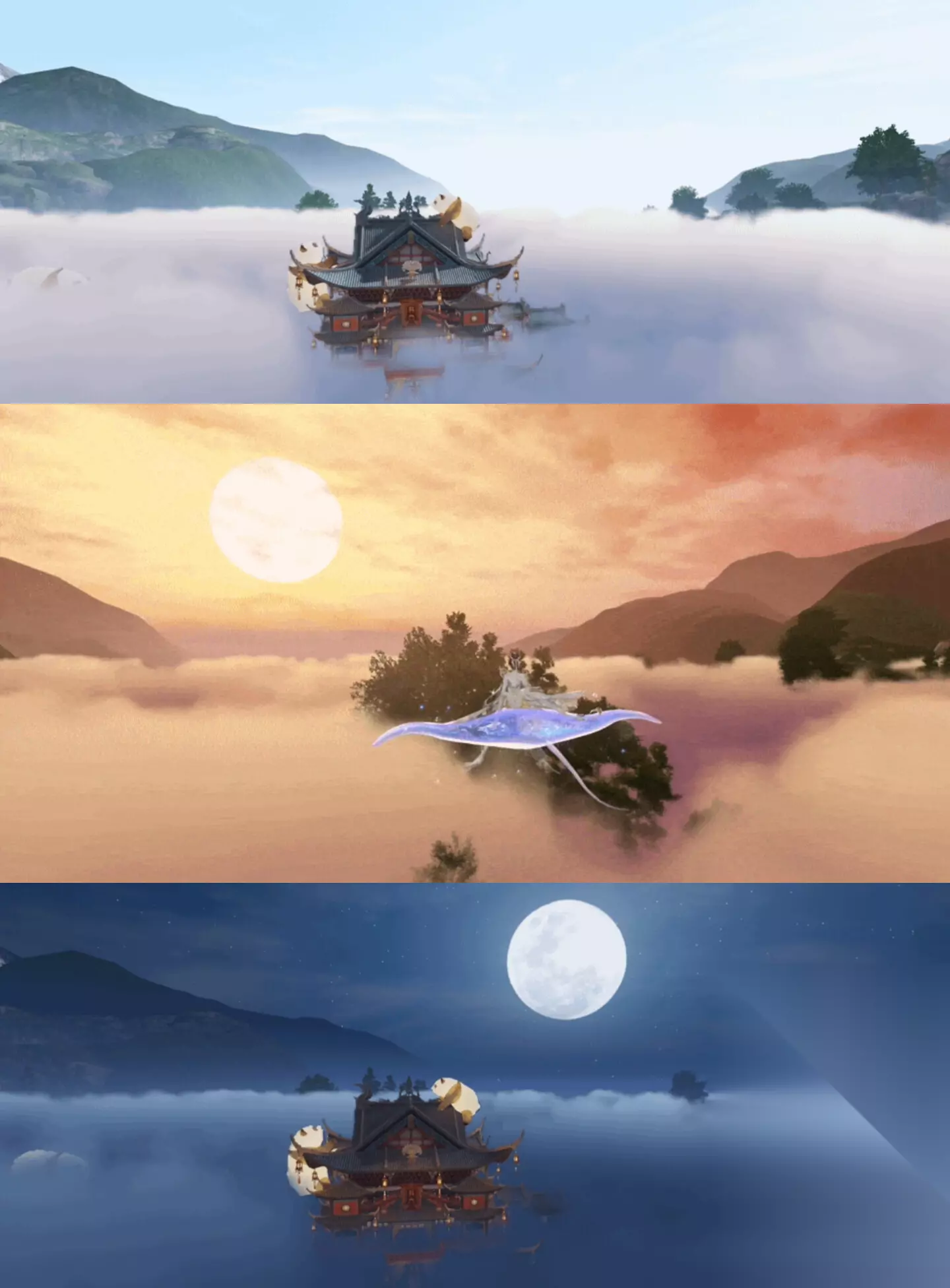 年末岁初,江湖奇景再添盛景!12月的蜀中蔚蓝云海,以及1月的太阴殷红火烧云,即将陆续加入江湖奇景这个“大合集”,为少侠的江湖旅途注入新鲜诗意与冒险乐趣! 云漫蜀天,似雪浪无涯;霭笼翠岭,如银涛接宇。本周更新后,蜀中上空凝聚片片广阔云海,云絮如雪堆叠绵延,雾涛翻涌环绕群峰。少侠不止可远观这篇云端奇景,更可亲身踏入云海之间,驾驭传说中的“筋斗云”,开启一场腾云驾雾的竞速之旅!