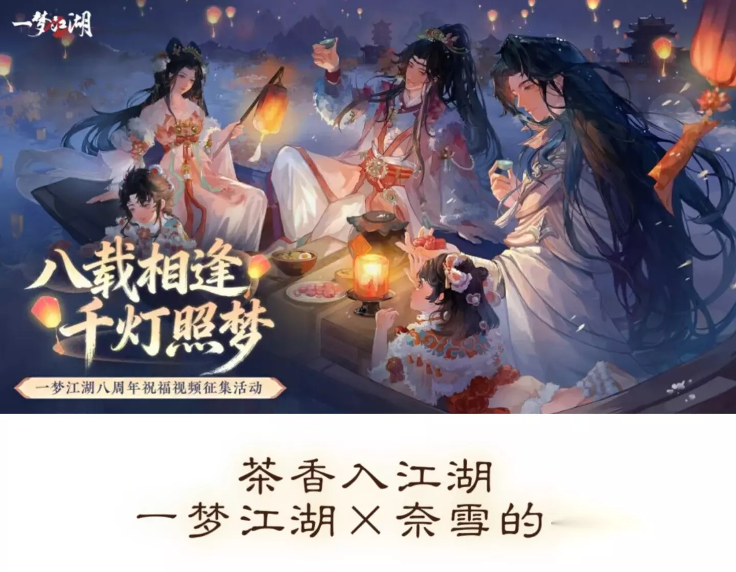 八年前,我们踏入最初的江湖。华山的风雪、云梦的荷塘、金陵的夜色……每一处风景,都曾留下你的足迹。这八年,是无数个日夜的陪伴,是无数次并肩作战的热血,是“一梦”,更是无数真实可触的江湖记忆。 如今,我们的江湖即将迎来八周年生日,这不仅是游戏的庆典,更是属于每一位少侠的节日。为此,我们诚邀所有少侠,参与 「八周年祝福视频征集」 活动,江湖故事、珍贵回忆......或是单纯送上庆典祝福,这个江湖总会因你而生动,因你而完整。 八周年,愿与你,再赴下一个江湖之约!
