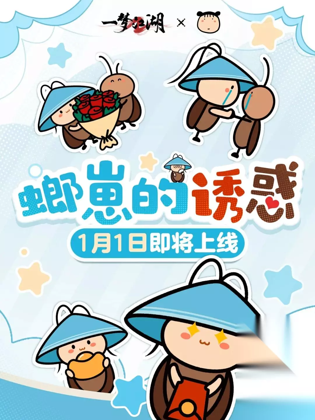 江湖奇遇,邂逅“螂崽”的诱惑!我们与@ghost小蔻 达成合作,推出一套生动趣致的小虾米梦崽×蔻之螂螂联动表情包,陪你畅聊江湖、趣斗日常。完整版系列表情包将于1月正式解锁哟!