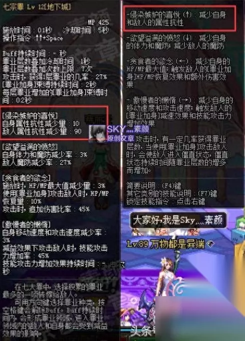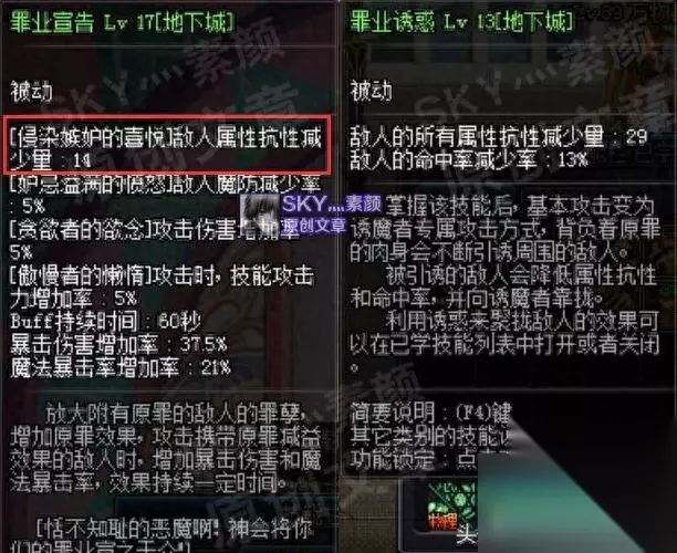 除了七宗罪Buff技能外,被动技能[罪业诱惑]和[罪业宣告]也拥有减抗的效果,其中[罪业宣告]的减抗数值固定,不受技能等级的影响;而[罪业诱惑]可通过堆等级来提升它的减抗数值,除了准备七宗罪Buff换装装备之外,也有可以准备一些对[罪业诱惑]具有增益效果的装备。 [七宗罪Buff换装]