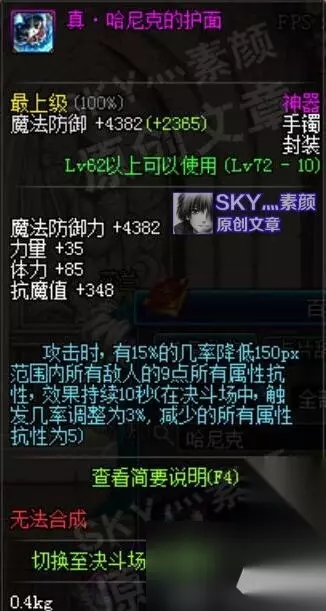 真-哈尼克的护面:攻击时有15%的几率降低150px范围内敌人的9点全属抗,虽然装备描述上没有写叠加,但真实效果是可叠加两次,也就是减少敌人18点全属抗。作为散搭非常不错,缺点是需要保持一定的攻击频率。