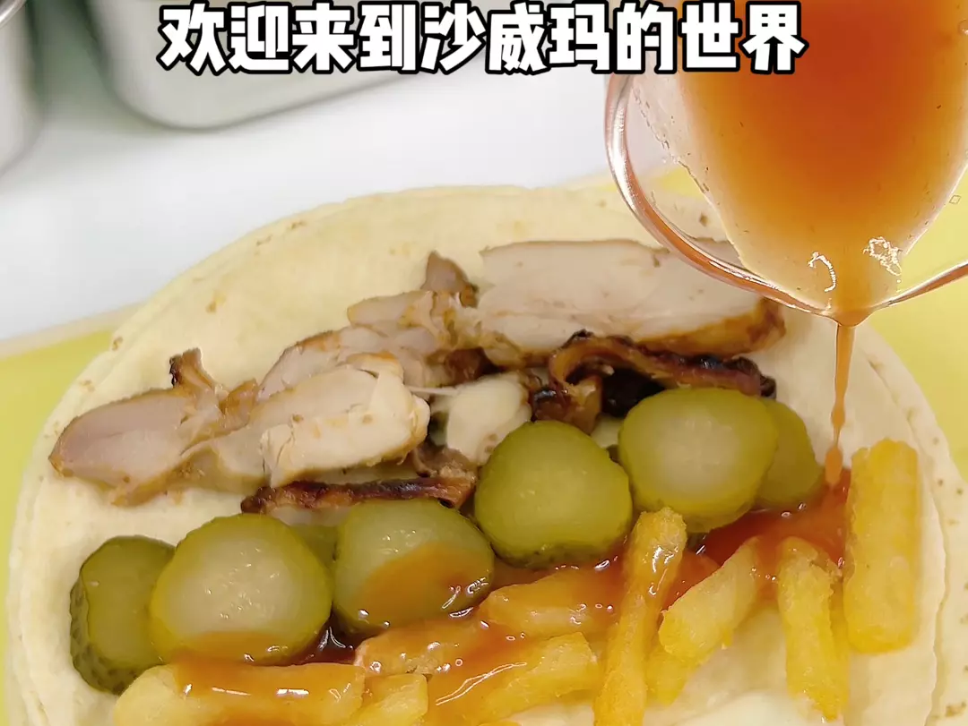玩游戏嘴馋了复刻一下沙威玛 这种大蒜酱非常解腻 多余的三明治我可以全部吃掉~