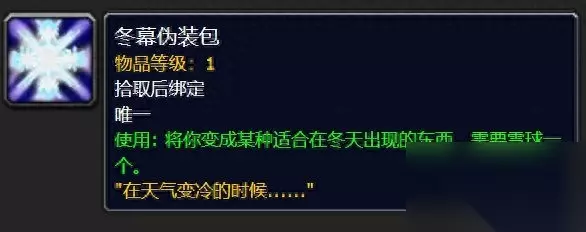 一个游戏机制让玩家轻松刷DK马这个速刷DK马的机制需要用到一个道具,就是冬幕节的任务奖励——冬幕伪装包。冬幕伪装包是一个白色玩具,使用的时候需要一个雪球,作用是将你变形成为一只雪人定身不动,无法做任何动作,除非到时间或者你点掉buff。这里我们正是利用了这个无法动弹的机制来实现速刷掉落DK马的Boss瑞文戴尔男爵的。