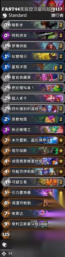 炉石传说标准星舰贼卡组1月2026年 标准星舰贼 FAST44美服登顶星舰贼,战绩不详,因为他只贴图了片段没有合计。
