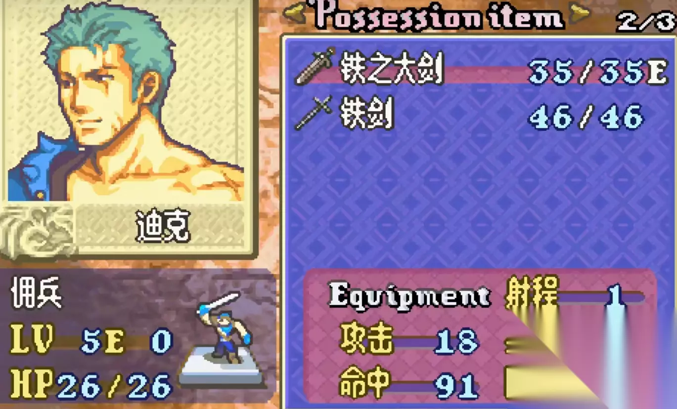 1.迪克 这个佣兵是在前期便可以加入到我们的队伍之中,这位也是前期的主力,他自身的佣兵职业外加斧精通可以对前期绝大部分枪拥有着很强的克制。他的成长基本上算是T1的模版,之后可以转职勇者,在草原线有着极高的出场率。玩家们可以将其当做是承伤外加克制枪的主力队员使用。