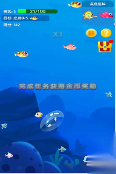 浩瀚的海洋背景环境中生活着大大小小的鱼类,比如有小金鱼或者是小鱼小虾,甚至还有大鲨鱼等。大鱼游戏就能将所有玩家成功带入到神秘的海洋世界里,可以应对各种高难度的挑战,而且也可以逍遥快活的游来游去。不过在体验这些游戏之前,可以选择阿里巴巴灵犀互娱旗下的产品233乐园app,这是大平台有保障,而且233乐园也是手游福利最好的游戏盒子,海量游戏登录就可以免费送券,0元首充,月卡5折等。 1、《大鱼吃小鱼》