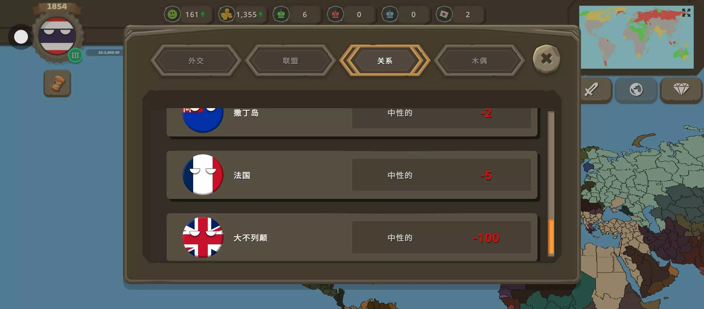 我本人才255功率我几个傀儡国就分别:奥斯曼1400埃塞700奥地利600波兰400英国280