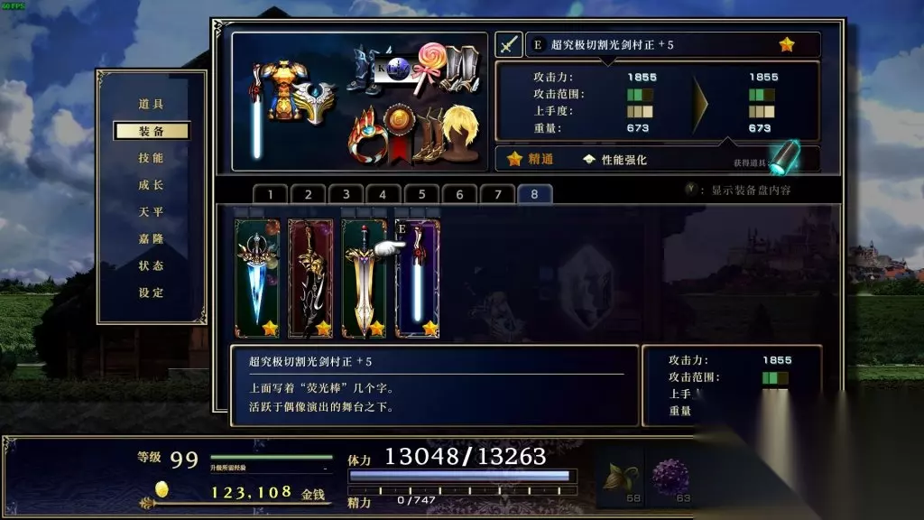 7、树枝 游戏开始给的树枝,别看它平平无奇,熟练度高的离谱,(我在第三章刷了半个小时才刷满),满熟练度后给的技能“刀匠”,前期刷武器熟练度必备。
