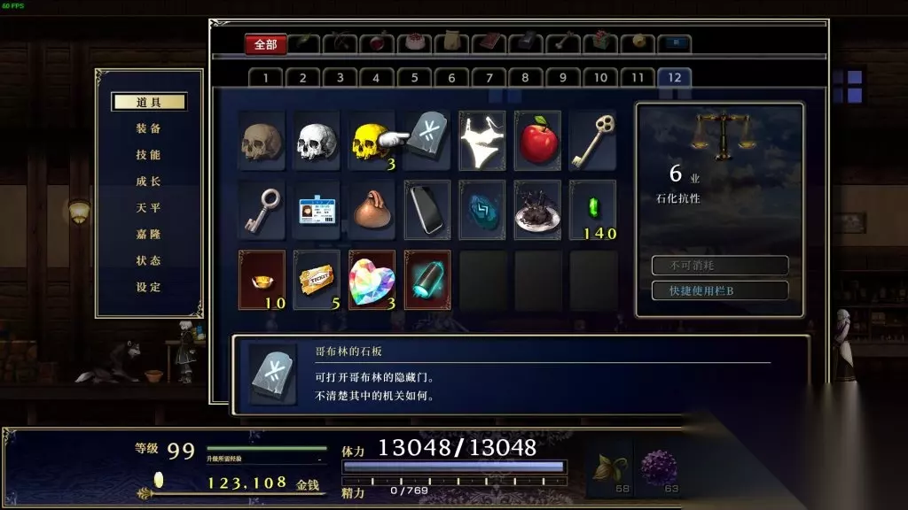 6、道具反复使用和重新获得 游戏里的好多道具可以反复使用,第二章的哥布林石板可以开第四章、第七章和主城的门,第七章的安眠药可以昏睡挡路的人。 一周目女子的贴身衣物会被使用,但是二周目亲哥会给一个(真亲哥)。