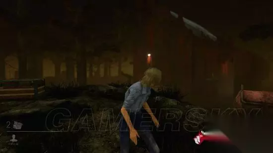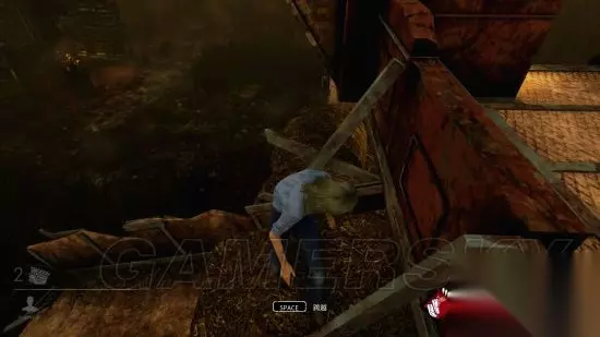 左右各一个,左边的窗户翻下去之后会掉到一个小平台上,不多说,赶快跑。右边的窗户翻出之后会掉到一个稻草堆上,这个点现在已经不是无敌点了,站在稻草堆上屠夫无论是从右侧的窗口砍还是左侧的稻草堆下面砍都能砍到你: