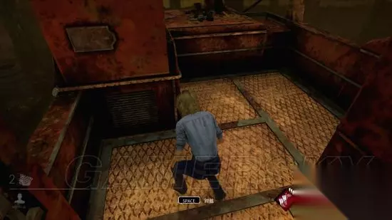 外面窗户右侧固定一个板子和一个长方形箱子,可以稍微围着跟屠夫玩会儿丢手绢,但不建议太长时间哟~ 这个无敌窗溜鬼是容错率较高的一个点,比较好上手。因为无论从窗户哪侧跟屠夫绕圈距离都大致相等,而且窗户外侧有板和遮挡物,失误的时候可以借助其拉开一下距离。 具体溜法就是从上图的窗户翻出,从有板那一边靠墙跑,然后进建筑里到窗口,根据屠夫走位看是否翻出,以此循环。(对没错就是这么简单) 需要说明几点: 1、上图右侧沿板子靠墙走左转之后又一个圆形木堆遮挡,每次走位需要绕开一下,不然蹭到的话就会减速,你会发现屠夫一瞬间就追上来了。 2、如果是电锯,有时直接翻进可能会被锯到,根据屠夫是否拉锯和距离是否够完全翻进去,在外面的时候屠夫若在板子远端那侧拉锯,来不及的时候可以往回走一下不要急着翻过去,依靠那个长方形木堆躲一下锯子,再稳稳当当的翻过去,没毛病。 3、如果是夹子鬼,需要事先搞清窗内窗外是否已经放夹,只要是玩过夹子鬼的屠夫,这个图这个点一般是必放夹的。更需要注意的是,这个点窗口内部放的夹是隐身夹,也就是说在没有小游戏(狩猎技巧技能,大张伟的传承)的情况下,你是看不见那个夹子的。确认的方法就是慢慢走过去,看屏幕下方是否出现拆卸陷阱(M1)的提示。你说有?有就拆啊愣着干啥…… 4、如果是女鬼,那么我建议你离开这个危险的窗户,换个地方吧大兄弟。 然后是钢铁厂内的二楼,一共两个上下口,一个在建筑里面