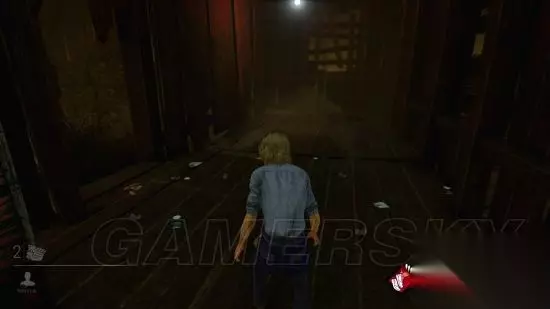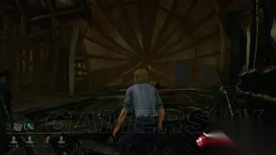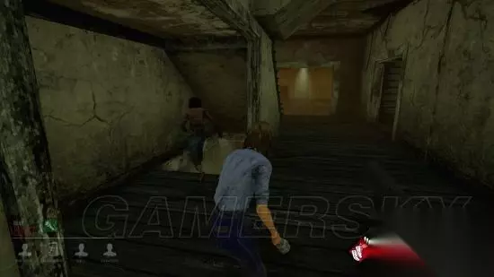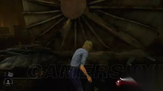 在情况实在紧急,无敌窗又有夹或者已经有个汪涵站在那堵你的路的时候,你可以选择跑上楼,楼上有两个固定的柜子……咳咳……不是。楼上可以稍微跟屠夫跑两圈。 楼上的通路只有一条,跑到头你会看到两扇对通着的打开的窗子,就像这样: