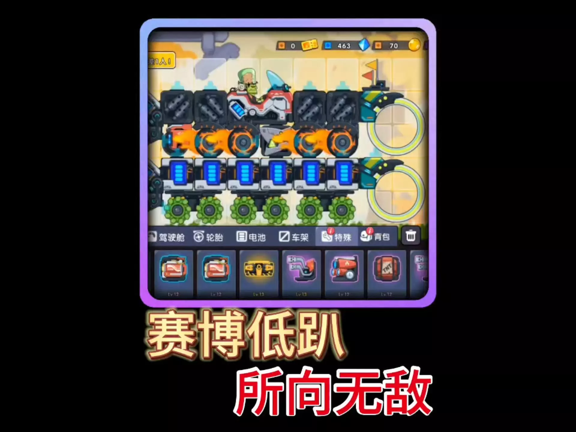 《极速赛车向前冲》是一款赛博风格赛车游戏,玩家可通过抽取宝箱收集赛博赛车部件,组装方式简单,将驾舱连接两个车轮即可完成组装,体验刺激的赛车竞速。
