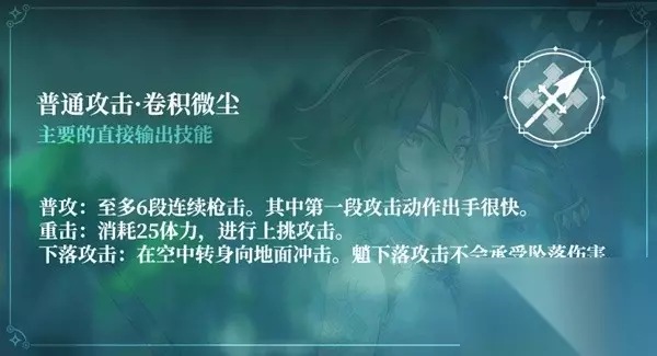 一次下落攻击可以打出下坠期间伤害(通称“擦伤”)和坠地冲击伤害,坠地冲击根据下落时的高度判定分为低空/高空。高空坠地的倍率更高、范围更大。 魈的普通攻击与重击共同遵循2.5s/3hits的默认附着;下落攻击的坠地冲击无附着CD、擦伤无附着。