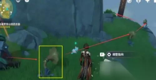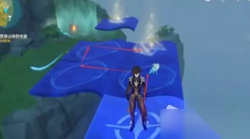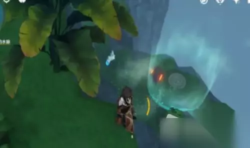 9.右边这个宝箱,有个感压机关,需要拿岩造物压在上面来暂时解除空气墙,比如岩主的E,钟离的柱子都行。(建议选择岩主,这里最好是直接拿到这个宝箱,不然后续如果改变了山体可能会不好做)