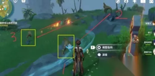 10.山顶:1号音律花调整一次,使其角度对准面前的2号音律花;然后3号调整三次到对准前面的目标,最后演奏发射音符。
