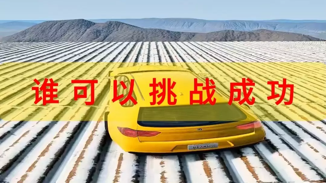 这是鸡爪社的小程序同款游戏《车祸模拟器》的挑战录屏,展示了多辆小车依次通过特殊赛道的挑战过程,部分车辆挑战失败,发起谁能挑战成功的提问。