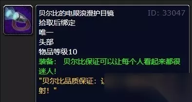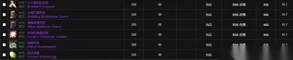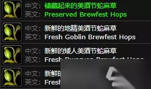 四、其他物品 新鲜的美酒节蛇麻草 新鲜的地精美酒节蛇麻草 新鲜的矮人美酒节蛇麻草 储藏起来的美酒节蛇麻草 贝尔比的电眼浪漫护目镜 布利克斯的电眼浪漫护目镜