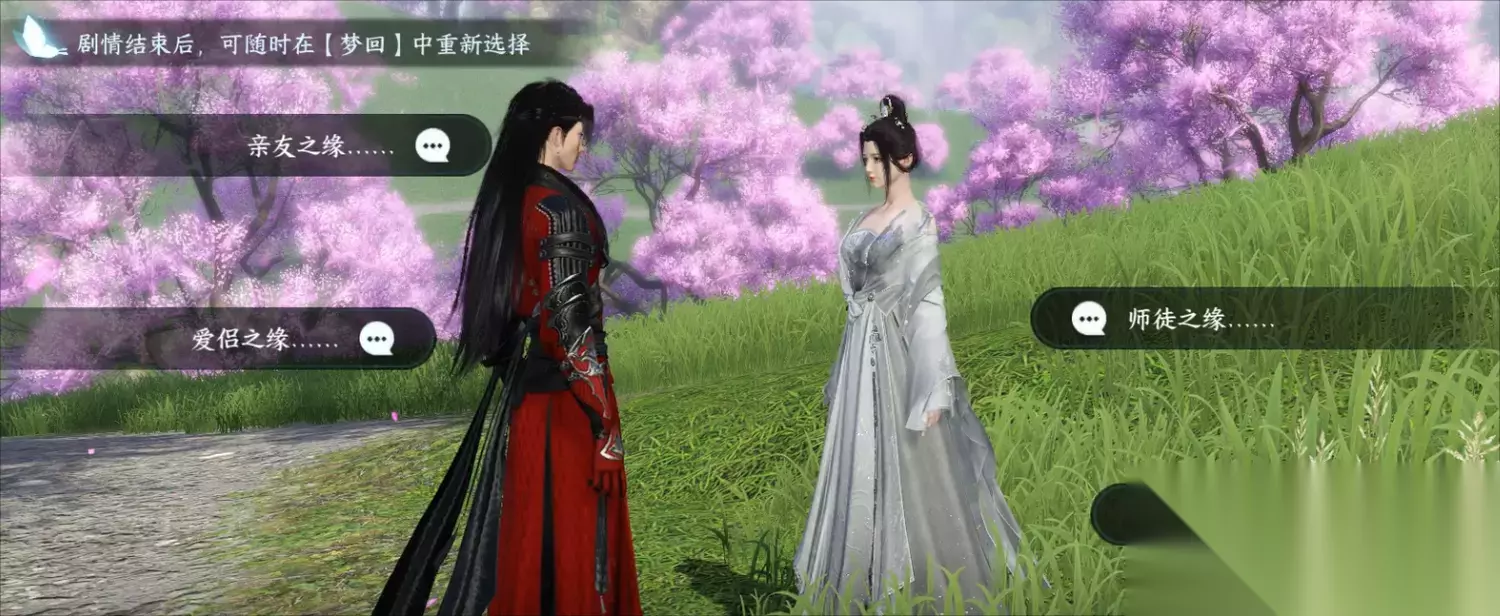 和NPC的话就直接进入剧情看动画,我这里点的是另寻有缘人,需要队友在杭州940.659对话NPC传送进桃花坞