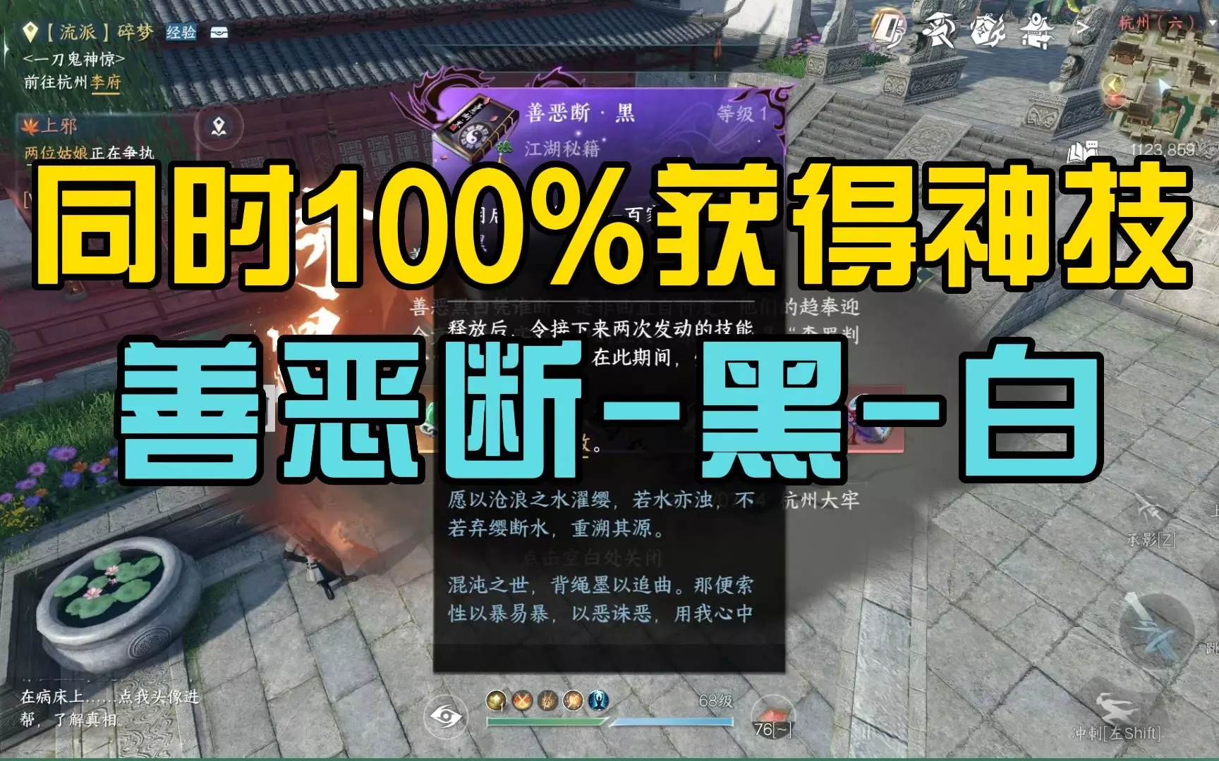 注意事项: 1. 拒绝了怎么办:可以重新加入, 传送到西湖 雷峰塔东北面的湖边有一个相思门接引人 ,坐标大概在940.659左右(到了打开地图左下角可以输入这个坐标定位过去)。进入相思门后再找到那个NPC对话,告诉她你想通了想重新加入,然后就可以继续了 2. 自己触发了任务想和CP一起但是点错了的:喊你cp去触发任务,让他点双人的邀请你就好了。(你可以多牵NPC一次,对方只能牵你一次) 3. 好友度是限制领取绝技的条件,随意一个好友就行,但是不能是NPC好感度 4. 月下红线的获取:先去杭州武林风云录这边的NPC兰朔听传闻,坐标1158.1098,他头上冒泡有文字说:武林风云录xxxx的就可以了,然后去找江边草对话杭州 975.1056,跑任务就行,之前跑过了的就有这个道具了,看看自己包里仓库里。 5. 退出门派需要一个小时cd加入其他门派 6. 西河名剑的领取做完奇遇去呼吸界面的任务里领取,需要完成奇遇,但是是系统给的奖励,不是奇遇给的 7. 自己的奇遇是自己的,cp组队触发另一个人也不算的,cp还得再走一遍流程的