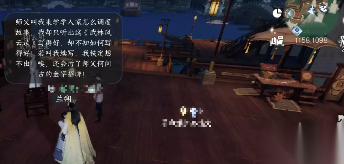 先来武林风云录这边的NPC兰朔听传闻,坐标1158.1098