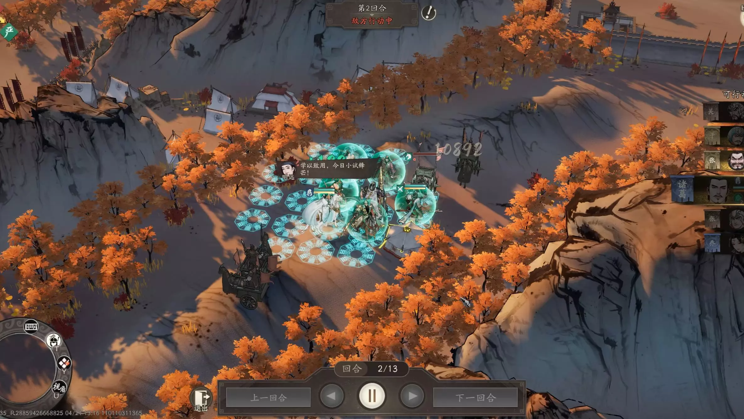 头两回合和操作思路参考的封狼大佬 后面练度无法完全模仿 因为没有高阶颜良文丑 所以关羽不能走骑兵 需要走统帅 同时不能无脑使用输出大招不然会减少敌人战意导致张辽…