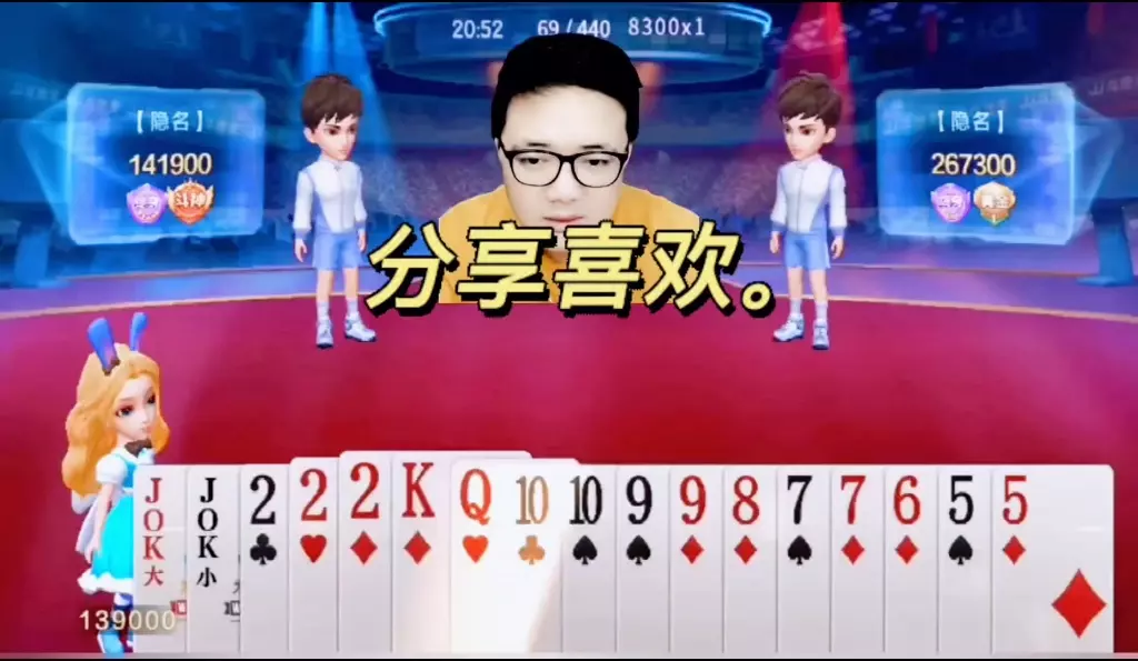 三岁玩牌破釜沉舟四个3的大胆一炸后期残局细腻的行牌为自己争取到了胜利!