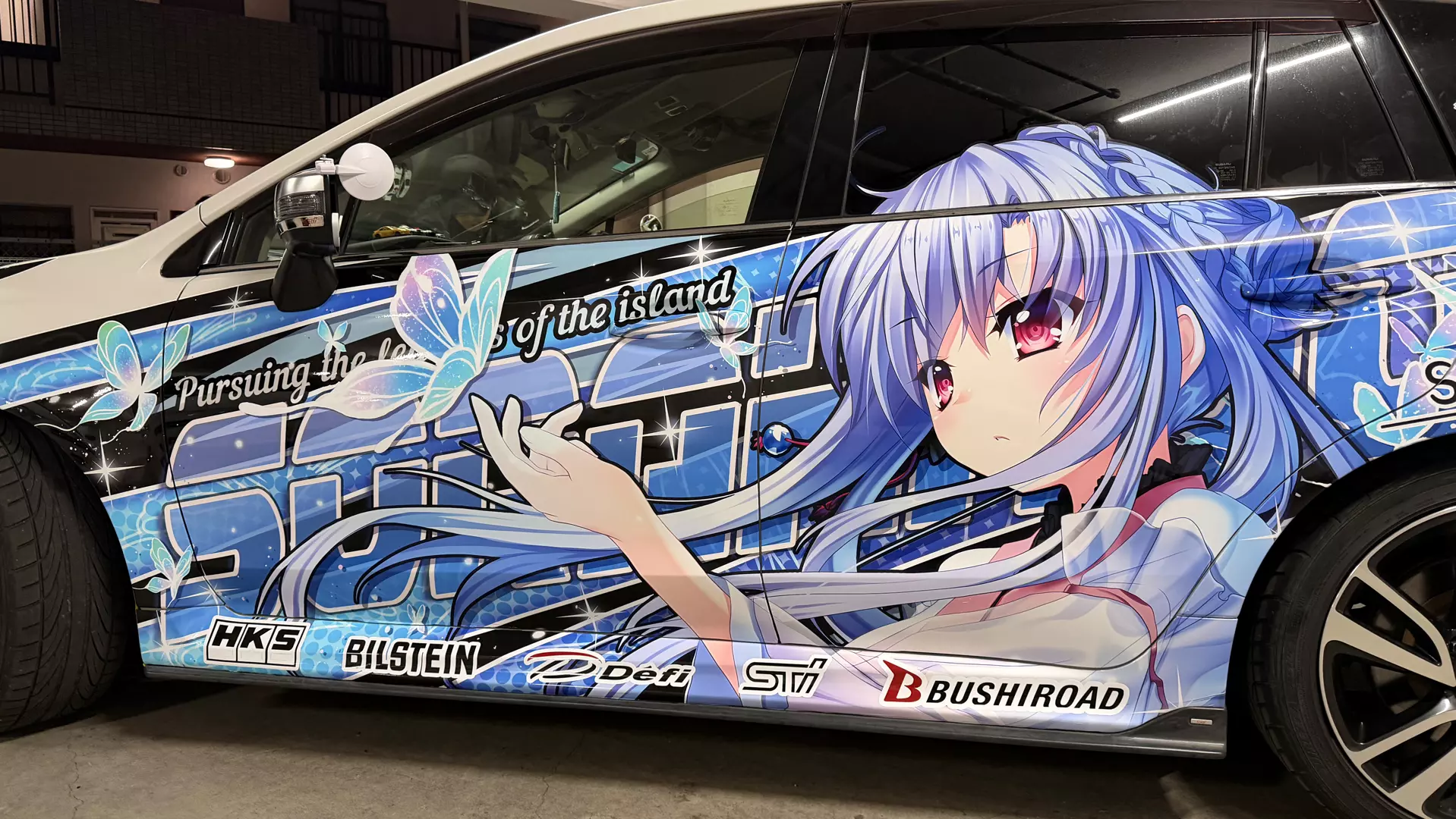 这是游戏里的零二痛车制作过程,展示了从基础贴纸添加、色彩调整,到逐步拼接、调整角度细节,最终完成带有零二形象的痛车改装的全过程,呈现了痛车制作的完整操作步骤。