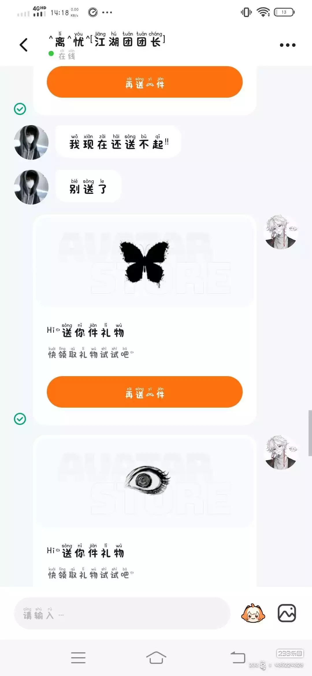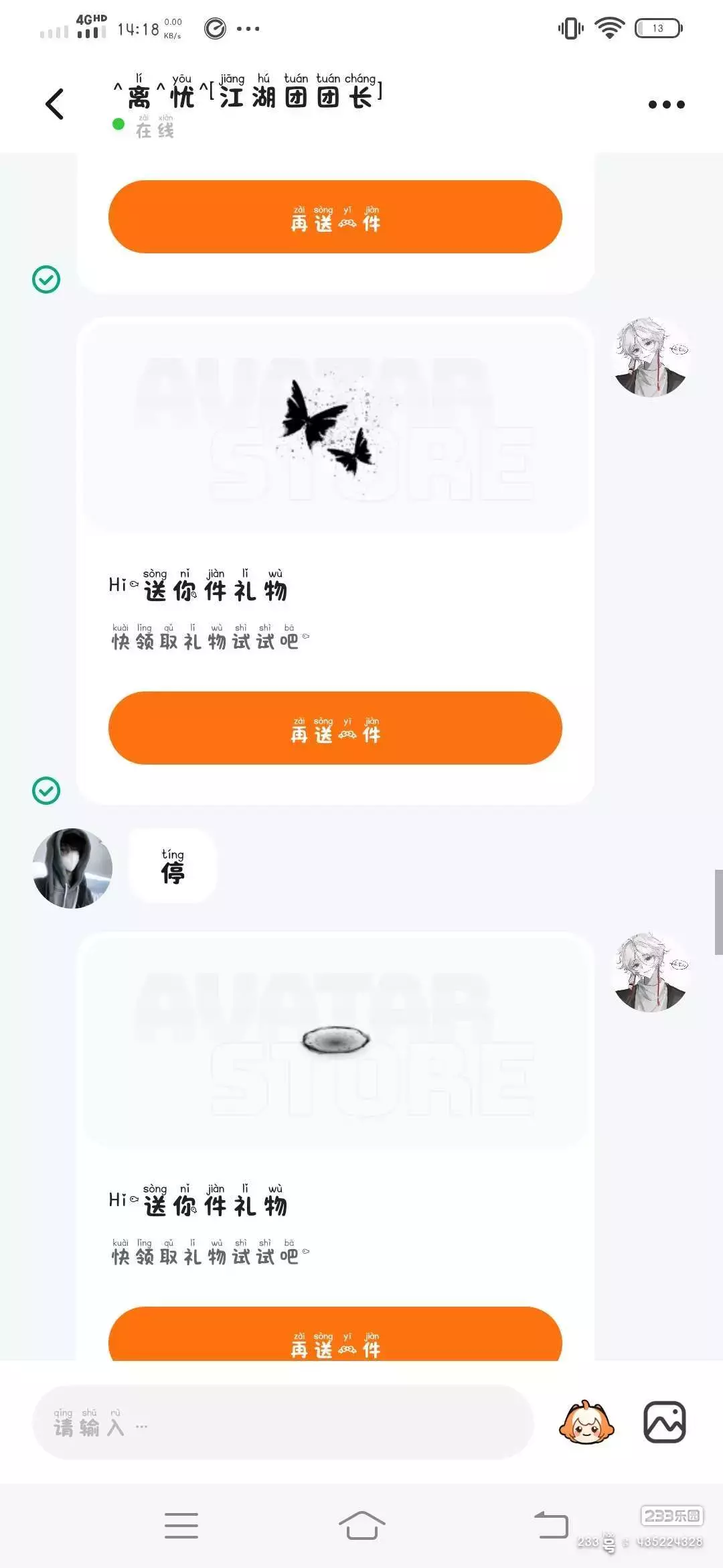 @^离^忧^[江湖团团长] @楚梦.上渊JS 有人证明第一个送了800币好像第二个楚梦送了2000