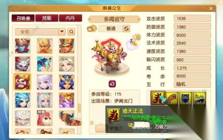 3、伊阙龙门上线了多闻巡守。 技能 诸天正法:根据力量、成长提升攻击力。