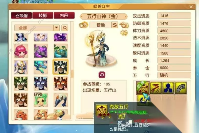 五行山神 克敌五行:对五行克制的目标造成的伤害大量增加。