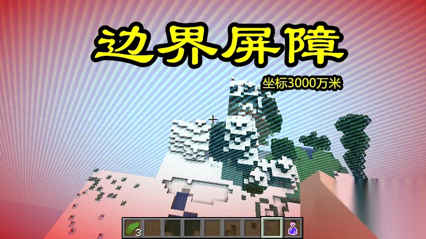 边界之地是只存在于JAVA版的真正的地图边界!这个位置在《我的世界》坐标30000000米内。而JAVA版早先的边境之地已经被移除,因为他们的存在只是一个地图生成的BUG罢了。但是关于MC的边界之地,知道的人却少得可怜! 1、如何到达边界之地:玩家可通过指令/tp 0 130 -29999999,快速到达边界之地。边界之地同边境之地一样,也有边界之角的存在,只需要将X和Z的坐标调整到-29999999即可。如果PE用这个指令,看不到边界,看到的只是无尽的塌陷区。 2、穿越边界:边界之地虽然理论上的极值只有30000000米,但是玩家却可以穿过边界。这时玩家的视野会变成血红色!这是在提醒和警告你,这里已经是MC的禁区了!禁止踏入!