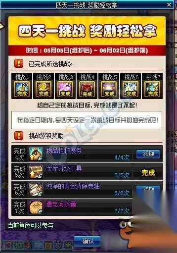四天一挑战明天就结束了,这次所有的奖励都会直接在明天删除。